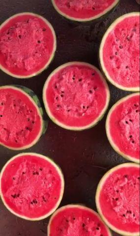 视频中,最引人注目的就是那些西瓜了。一个个圆滚滚的西瓜,像一个个小太阳,散发着诱人的光芒。农民伯伯们拿起西瓜,轻轻一拍,就能听到清脆的“砰”的一声,那是西瓜熟透的声音。紧接着,他们熟练地切开西瓜,露出鲜红的果肉,让人垂涎欲滴。
